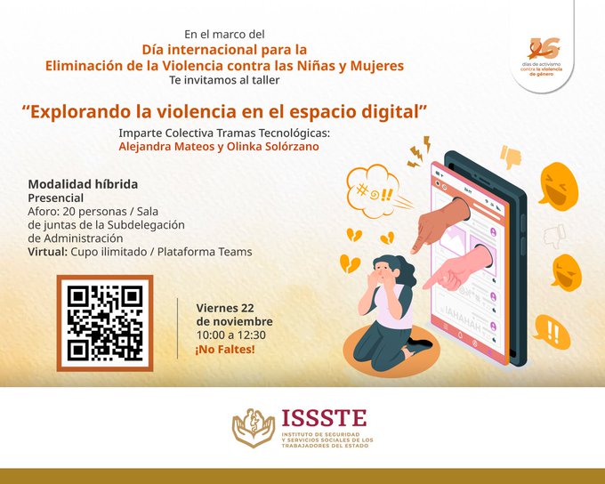 Taller presencial “Explorando la violencia en el espacio digital” en el marco del Día Internacional para la Eliminación de la Violencia contra las Niñas y las Mujeres. En esta actividad se presentaron las diferentes violencias que las mujeres y niñas experimentan en Internet y espacios digitales, se realizó un ejercicio práctico de identificación y catalogación de las violencias.